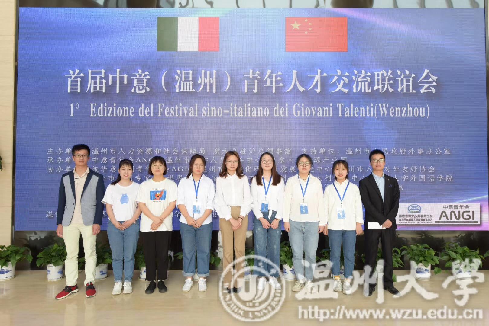 5月4日下午,首届中意(温州)青年人才交流联谊会在世界温州人家园举行。来自浙江大学、同济大学、意大利佛罗伦萨大学、意大利都灵大学等高校的32位意大利青年人才代表齐聚家园,与温州高校学生代表、政府部门负责人等进行交流对话。bat365官网16级翻译专业6名同学应邀作为语言服务志愿者以及本土培养的大学生代表出席,参与此次交流会的各项议程。