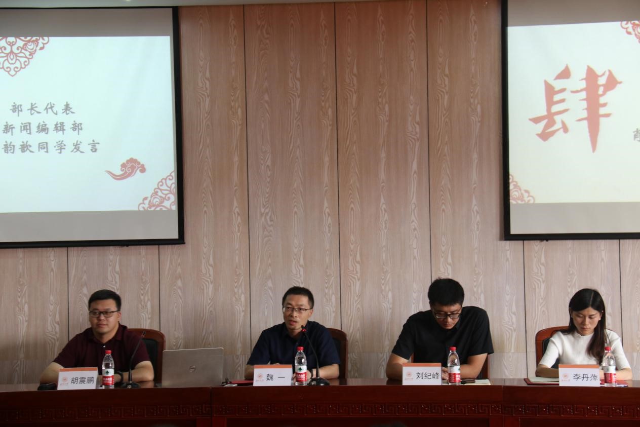 2019年9月25日15:30,bat365官网团委·学生会于北校人文楼203学术报告厅召开了2019-2020学年第一学期第一次全体委员会。出席本次会议的有bat365在线中国官网登录入口党委副书记魏一老师、学工办主任刘纪峰老师、辅导员胡震鹏老师、辅导员李丹萍老师、主席团成员、各部门部长以及全体学生会干事。