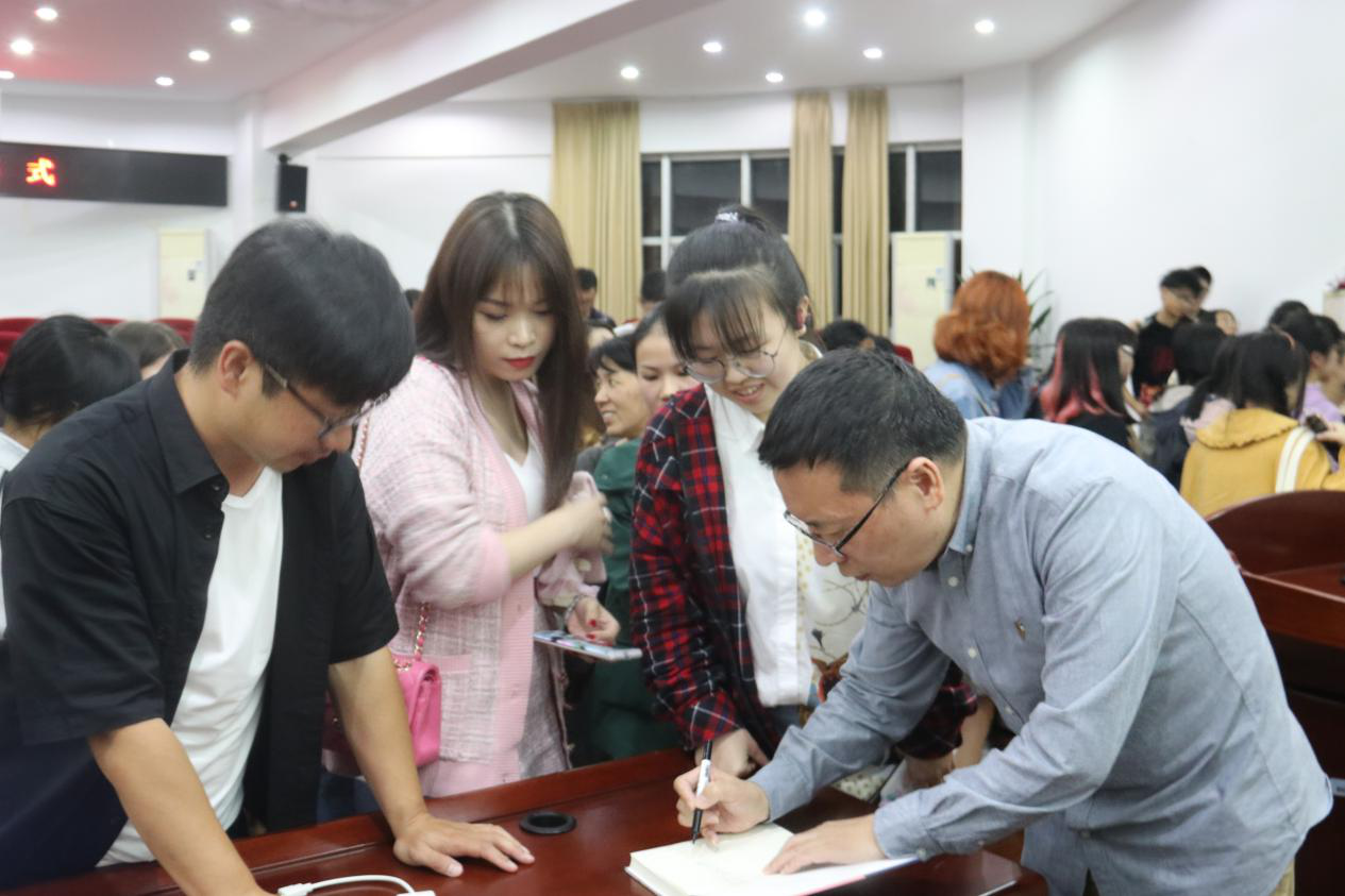 开幕式结束后,钟求是作家以讲座形式,进行了题为《小说世界的构建》的讲座。钟作家以一个细腻的介绍视频为开端,清晰地向我们展示了他的创作历程以及作品《等待呼吸》的主要内容,让我们看到种种残酷的背后是坚强和勇敢。在讲座中,钟作家向同学们介绍了搭建小说世界的四个维度——故乡、死亡、爱情与困境。他以自身丰富的阅历告诉同学们,每一位作家都要具有野心,用野心完成一部压得住岁月的作品,把内心撕开,亮出文学血淋淋的一面;要克服写作上的难点,突破时间上的限制,把握好写作的分寸,并不断追求还原时代背景下人物的真实生活;要用自身的天性、阅读史以及对生命的态度为写作准备一次华丽的埋伏,“让埋伏在岁月中的人物,在对的时间,跳出来,与我们迎面相遇”。