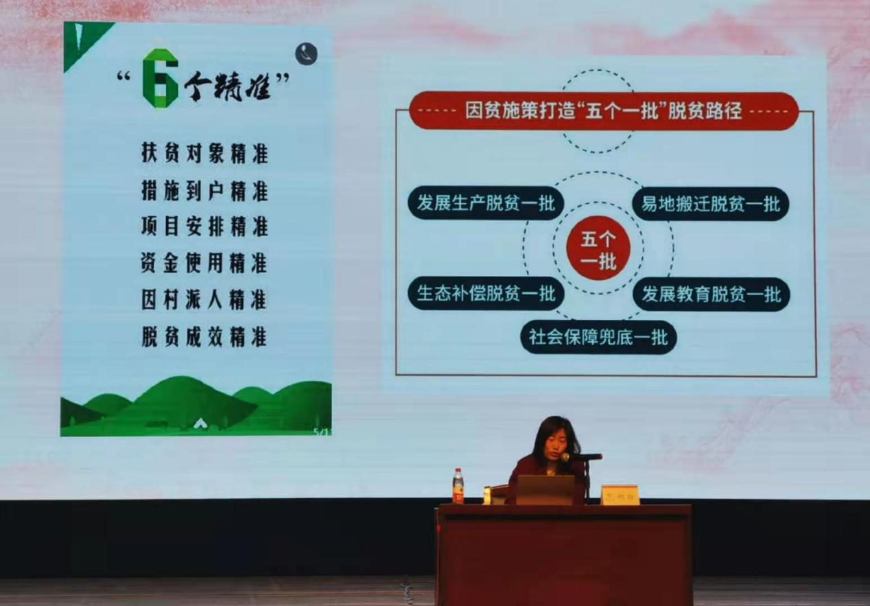 “从扶贫成就看新中国发展”是何玲老师本次讲座的主题。在讲话中他讲述了四史的重要性和新中国扶贫70年的主要成就。她提出,历史是最好的教科书也是最好的清醒剂。并通过“五年计划”诠释“中国之治”的独特魅力。