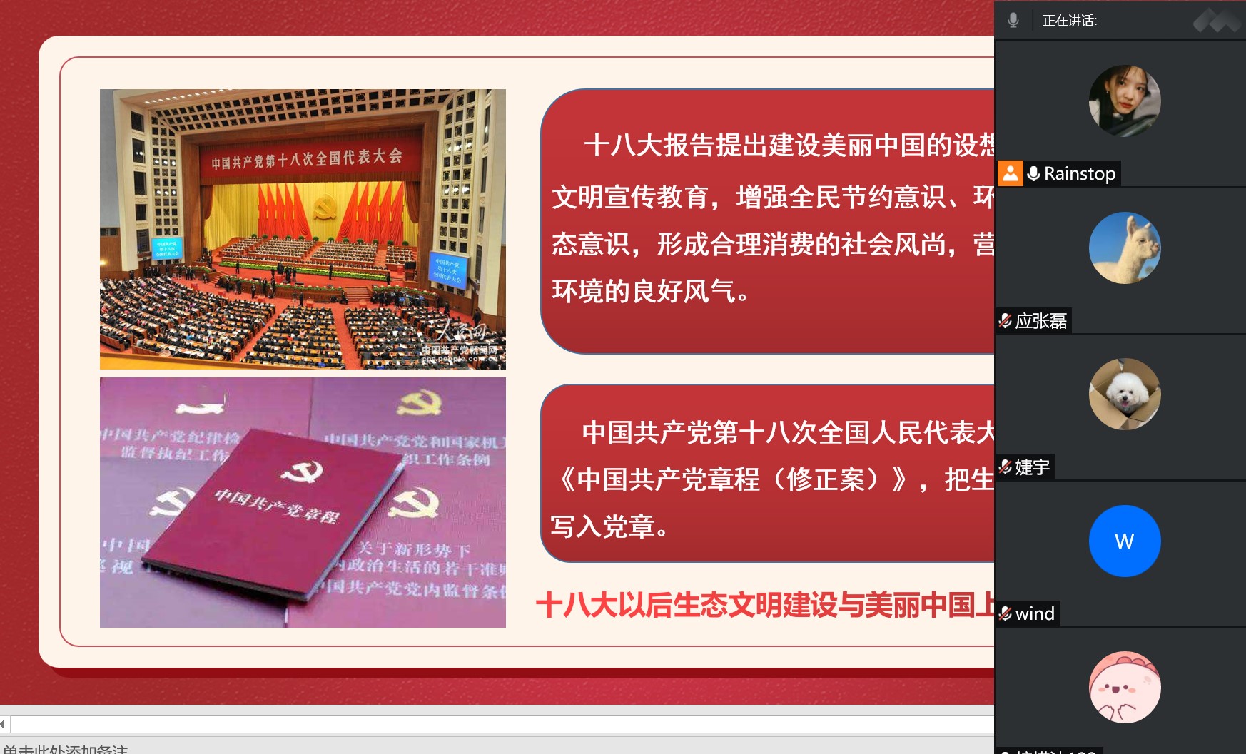 绿色学校创建工作对于推动形成国家社会经济发展新格局、助力美丽中国建设具有重大意义。为坚决贯彻落实党的十九大精神,践行绿色发展理念和绿色生活方式,呼应国家对于简约适度、绿色低碳的生活方式的倡导,反对奢侈浪费和不合理消费,使节约能源、低碳生活的观念深入人心,bat365官网组织各班级通过线上+线下的方式,陆续召开了《践行绿色发展理念 共建美好绿色校园》主题班会。