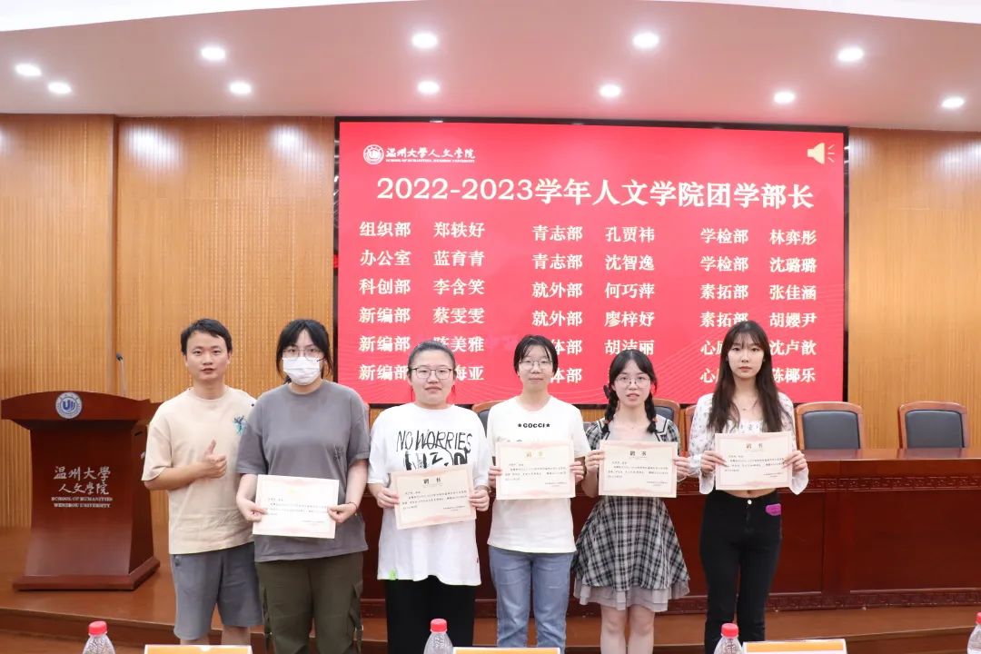 会议伊始,全体人员在庄严肃穆的伴奏声中起立齐唱中国共产主义青年团团歌。而后,人文团学各部门部长上台介绍部门职能、汇报本学期工作计划并进行新干事介绍。