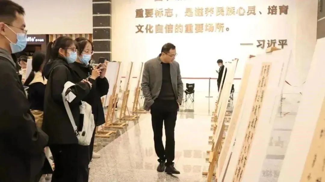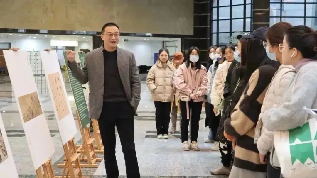 为纪念谢灵运莅临温州1600周年,弘扬传承温州深厚的历史文化,谢灵运诗意书画展在我校育英图书馆开展。bat365官网洪之渊副教授作为导览嘉宾带领我们参观此次展览。