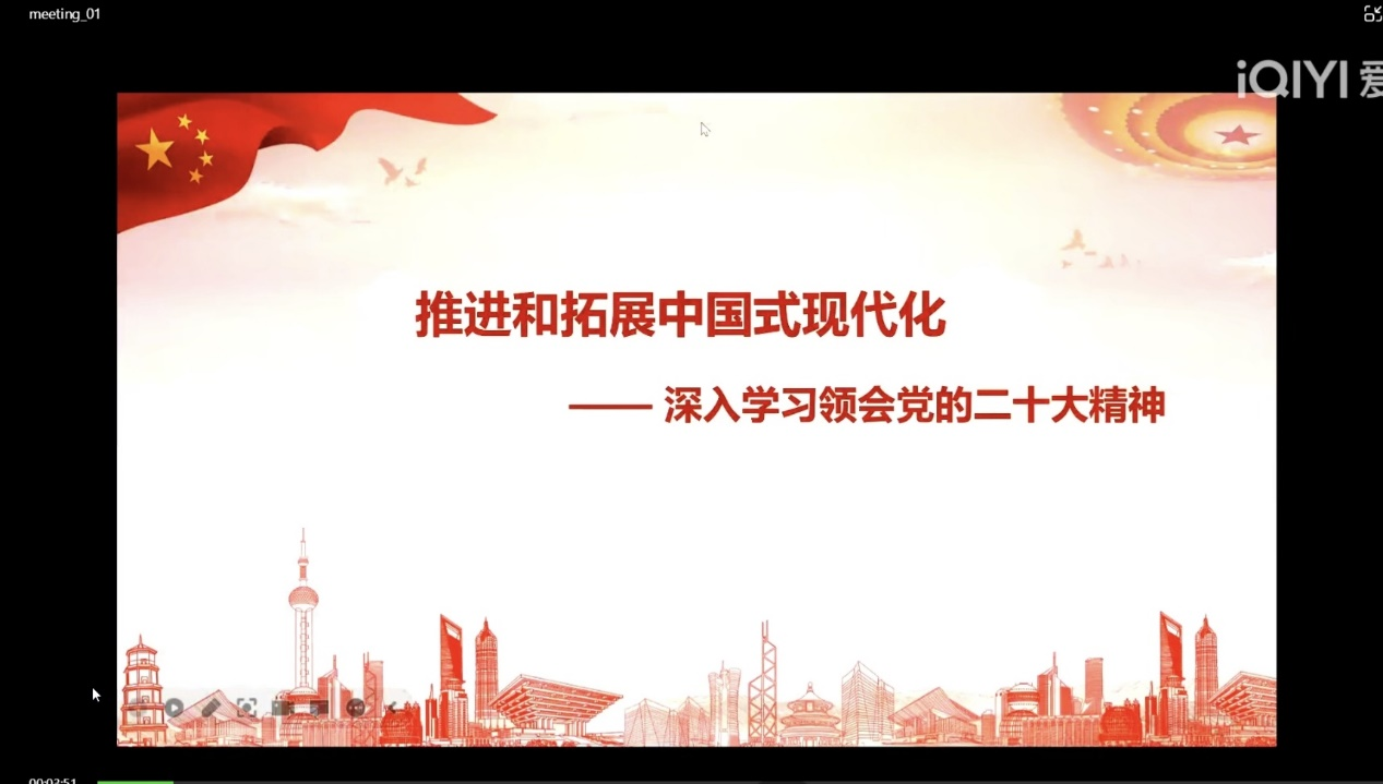 本专题由马克思主义学院何玲老师主讲。何玲老师从历史、时代、人类历史文明三个维度向同学们分析了党二十大的重要意义,通过视频向同学们展示了中国的百年变化,让同学更加直观地感受到中国的发展。顺着二十大提出的任务,老师从王朝危机与亡国危机交织下的现代化的探索、新中国成立后到改革开放前的现代化探索等阶段分析中国式现代化的特征与意义。