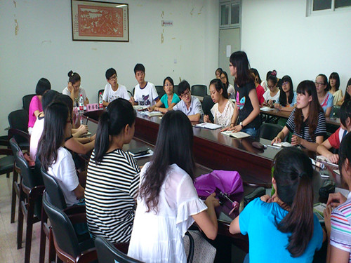 会议伊始,曾老师首先发表了讲话。讲话中,曾老师指出,作为学生代表,我们要拒绝官僚作风,放低姿态,为同学办实事,做到"以爱凝聚,以爱管理,以爱服务"。之后,曾老师有为学生会干事介绍了学区制,明确了学院学生会和学区学生会的分工,鼓励学生干部要做好带头作用,尽快适应学区制改革。曾老师的发言赢得学生干部的阵阵掌声。发言后,学生会副主席屠焕青又进一步详细地介绍了学区与学院的工作领域,使在场的学生干部有了具体的认识。