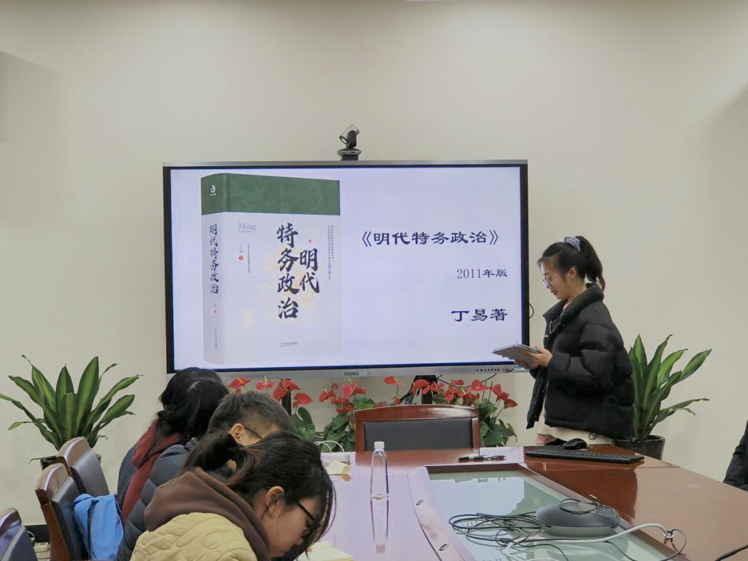 李童同学为大家分享的是《明代特务政治》一书。她从宏观与微观两个层面介绍明代宦官群体的活动。通过强调皇帝与大臣、大臣与宦官以及宦官与百姓的对立,揭示明代帝王特务的实质。最后,李童同学认为本书对于了解明代宦官群体具有一定的参考价值。