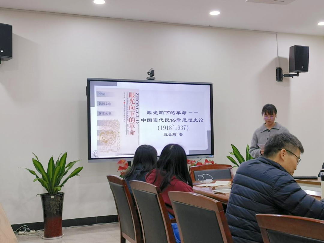 白思敏同学为大家分享的是《眼光向下的革命》一书。她以什么是“眼光向下”的问题出发,向我们展示了民俗学1918~1937年的发展轨迹。最后,白思敏同学认为“眼光向下的革命”是指中国现代民俗学的产生与发展,以及这一学科它所做出的贡献。