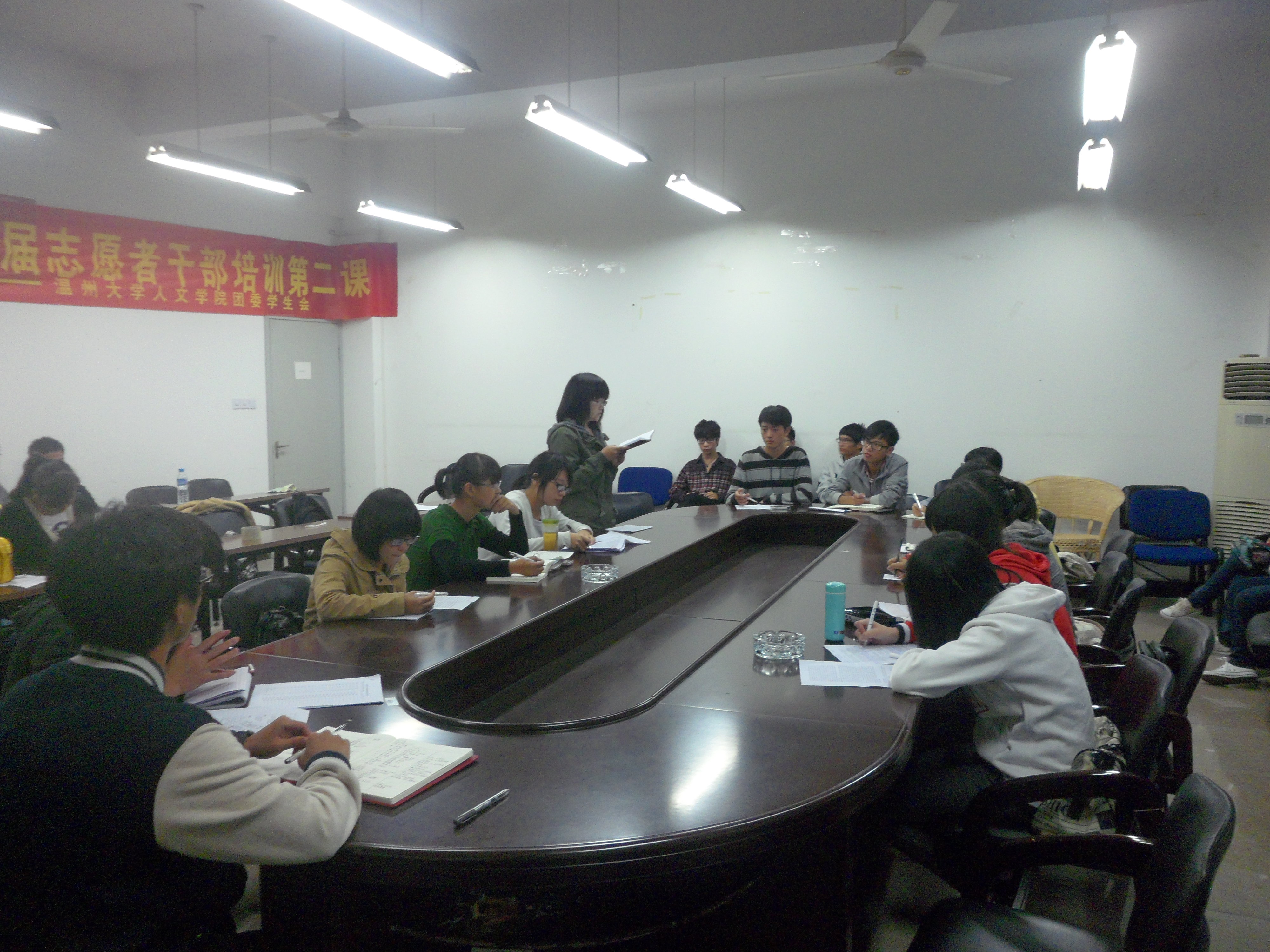 2012年11月06日晚上18点30分,bat365在线中国官网登录入口人文思源青年志愿者协会于bat365在线中国官网登录入口北校区人文楼311会议室开展了第八届志愿者干部培训第二课。bat365在线中国官网登录入口学生会主席杨立忠、团委副书记林武和bat365在线中国官网登录入口学生会青协部长胡梦培参与并担任此次活动的评委。本活动旨在通过辩论赛的形式锻炼志愿者干部口语表达能力,为日后志愿者活动对外沟通作准备。