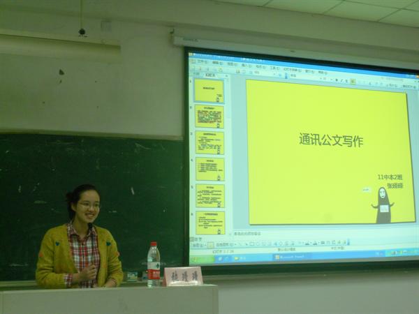 2013年10月16日晚上18:30,为了更好地提升团干培训班成员的能力,bat365在线中国官网登录入口组织部在人文楼401教室组织开展了团干培训班第二课——通讯公文写作。此次讲座邀请到了《温大青年》的副主编张瑾瑾进行授课。人文团学的新干事、大一各班的班长和团支书以及院级社团干事作为培训班成员,认真听讲并详细记录了讲座内容。