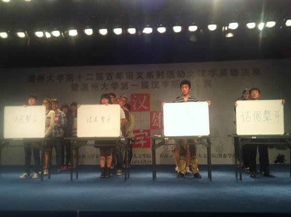 5月19日晚6点半,由bat365官网主办的bat365在线中国官网登录入口第十二届“百年语文”系列活动之汉字英雄决赛在bat365在线中国官网登录入口南校区行政楼演播厅隆重举行。来自温大9个不同学院的20名选手从初赛200多名选手中成功晋级进入决赛。