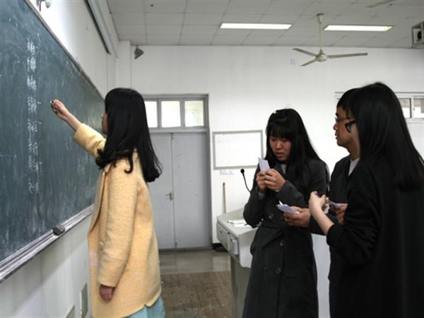 本次会议的第三个环节是经验交流。张典雅同学作为班里学习成绩的第一名,就上课笔记和考前复习两大方面与同学们分享了她的学习经验。王梦俐同学跟大家分享了她如何协调工作与学习这一问题——学习上要博览群书,工作上要认真负责。514寝室长黄芯蕊同学向大家介绍了她们寝室是如何做到团结、亲密的。