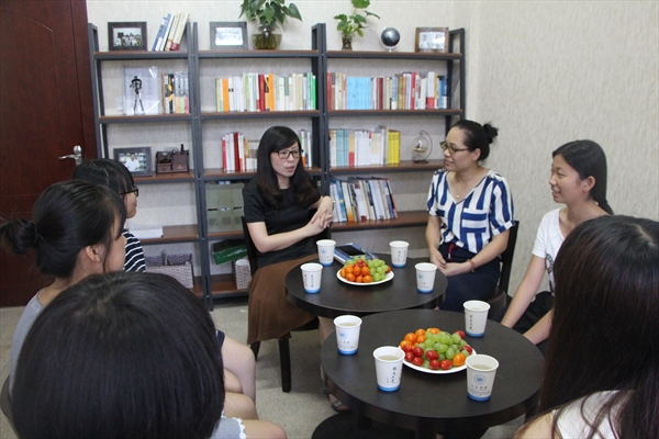 2015年6月26日18点30分,bat365官网“罗山论道”师生沙龙活动第三期在人文楼罗山小筑内举行。本期主题是“女大学生的情感密语”,邀请到了学院党总支书记吴静老师作为嘉宾,曾蓓蕾老师作为主持人,与6位同学共同畅谈感情,畅聊人生。与往期不同的是,本期活动为“女生专场”。