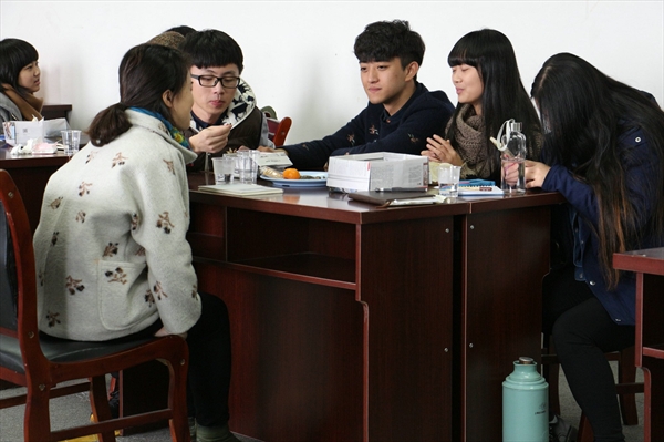 在成教主席团的带领下,人文团学一行人来到了成教学院,并且进行了参观。相比于南校北校,成教学院虽然不大,却是胜在精致,让我们惊叹了一番。在成教学院主席、团副的介绍中,一行人徐徐地来到了会议室,大家先进行了一番自我介绍,增进了彼此的了解程度。之后,两个团学各个部门互相介绍了各自的工作情况,让双方都初步了解团学的运行状态。接着的两个游戏,“胡辣汤”和“抢位子”,输的人接受了惩罚,并表演了才艺,现场的气氛充分地被调动起来了。乘着气氛的活跃,自由交流环节也开始了。两个团学中有相同职能的部长们聚在了一起,讨论在自己部门中出现的一些问题。交流是解决问题的一种很好的方式,通过交流,主席团们、部长们都收获颇多。最后,由成教学院的团委书记郭和强老师做了讲话。他热情地欢迎了人文团学的来客,也讲述了一番人文与成教的渊源,希望在今后的日子里交流能够继续下去,友谊能够长久下去。