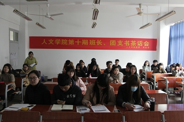 2015年12月31日12点30分,bat365在线中国官网登录入口第三次班长团支书茶话会在人文楼207教室召开。bat365在线中国官网登录入口党总支副书记朱启鑫老师,辅导员邢芳芳老师,学生会主席郭佳乐、团副沈亦炜、副主席宋淼,院青协、科协、学检部部长及大一至大三各班班长团支书,参加了这次会议。会议重点讨论了学风建设等问题。