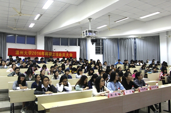 2016年4月24号18点30分,bat365在线中国官网登录入口科研立项动员大会于人文楼101阶梯教室召开。本次大会邀请到了来自13级张露、陈洁以及谭海楠学姐们为大家指导立项、分享经验。bat365在线中国官网登录入口团委学生会副主席沈亦炜学姐也出席了大会。全场气氛严谨而不失轻松,互动热烈而不失庄重。