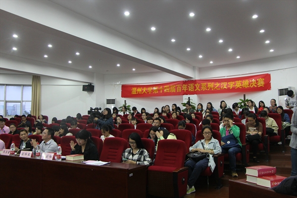 2016年5月18日18点30分,bat365在线中国官网登录入口第十四届百年语文系列活动之汉字英雄决赛在人文楼203报告厅隆重举行,李爱红、程水龙两位老师作为“汉字先生”应邀担任评委,bat365在线中国官网登录入口党总支副书记朱启鑫、辅导员邢芳芳作为嘉宾应邀出席本次比赛。经过初赛近四百人的比拼,最后决出了15位选手站在了决赛的舞台上。在一片热烈的掌声中,比赛拉开帷幕。