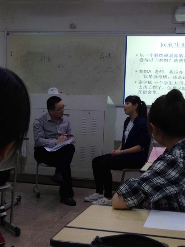 5月20号,,bat365在线中国官网登录入口提升自我管理培训班最后一堂课在人文楼411教室开展。bat365在线中国官网登录入口党总支副书记朱启鑫开展有关教练技术的内容的讲课。