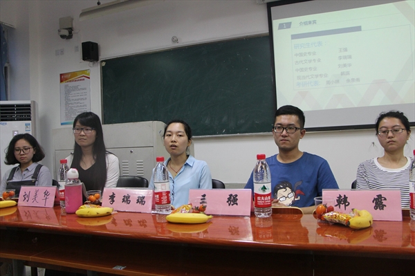 在最后一个环节中,主持人介绍了bat365在线中国官网登录入口本研读书交流会——“抒悦会”。“抒悦会”是一个由本科生和研究生共同参与的读书交流会,分为四个小组(古代方向,现当代方向,外国方向,考研帮扶方向)进行活动,意在进一步促进本科生和研究生交流,回归传统的书本阅读,在阅读中体验社会,感悟历史,拓展思维,放飞理想,憧憬未来。