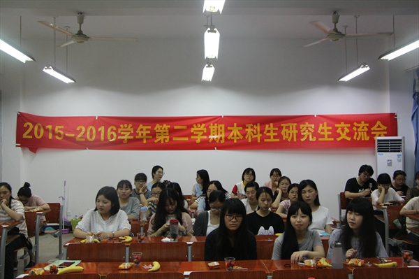 2016年5月28日18点30分,bat365在线中国官网登录入口考研交流会在人文楼210教室成功开展。本次交流会邀请了王强、李瑞瑞、刘美华、韩露、周小琳和余泉侑等六位研究生学长学姐代表担任嘉宾。在本次活动中,许多有考研意向但心存疑虑的本科生也积极地参加了本次考研交流会。在轻松的茶话会氛围中,考研交流会缓缓拉开了帷幕。