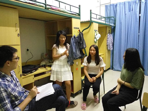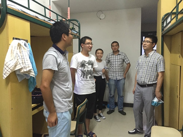 在走访的过程中,老师们亲切地与新生交谈。了解他们的家乡、本科学校,关心他们来温大后的报到和住宿安置情况。同时,夏院长也就同学们关注的今后的课程、研究方向等学习生活问题向新生们提出了建议和指导。同学们也热情地和老师交流自己对温大的映象,认真聆听老师的建议,并对老师的来访表示感谢。