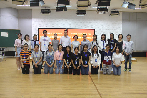 此外,出席本次开营仪式的还有14位泰国学生以及由bat365在线中国官网登录入口研究生组成的志愿者。开营仪式结束后,志愿者带领泰国同学参观了bat365在线中国官网登录入口民俗馆、发绣馆,学员们亲身体验中国传统的发绣技艺,惊叹于绣艺的栩栩如生与巧夺天工。接着,在一片欢声笑语声中开启了欢迎午宴,午宴结束后便进入到汉语研修秋令营的正式活动。当日下午,泰国学子们参加了两个小时的汉语会话课,并于当晚参加了bat365在线中国官网登录入口本科生们精心策划的欢迎晚会,一系列的互动小游戏迅速拉近了同学们的距离。