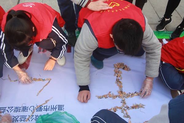 随手丢弃的每一个烟头都是对辛劳的城市美容师们工作的一份轻视,这小小的烟头隐藏在每个细微的角落,看似不起眼却增加了“美容师们”的工作量,破坏了这和谐美好的自然风光。试着多走一两步,将垃圾丢进垃圾桶吧,只是如此小小的举动却可以为他人,为自然带来便利和美化。而在这小小举动之下,你既尊重,温暖了他人,又是对自身素质的一个的升华。
