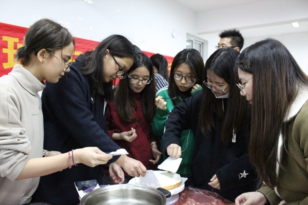 活动在下午两点钟开始。班委们提前两个小时在活动室布置场地,并且和主办方做好相应的沟通。随着背景音乐的响起,团支书李扬帆为我们介绍了活动的一些相关事项,随后烘培老师讲解了主要的制作步骤和注意事项,大家便分为四大组开始进行蛋糕制作的学习。