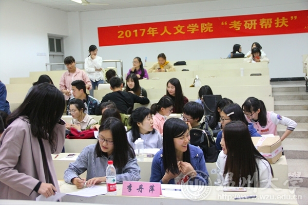 随后,由研究生代表张杭、林望帆和李丹萍发言,他们结合自己的亲身经历给学弟学妹们分享其宝贵的经验。之后的你问我答互动环节也精彩非常。互动之后便是现场对接,帮扶人一一上台做一到两分钟的自我介绍,帮扶对象和帮扶人双向选择,所有帮扶对象在现场圆满地完成了考研帮扶对接。