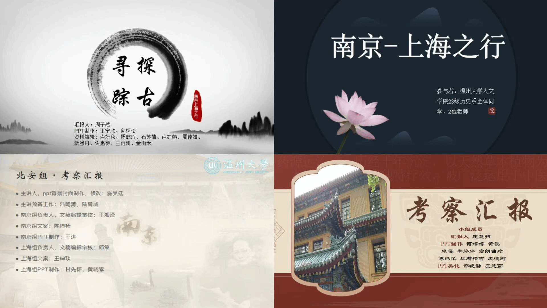 考察汇报中,各小组立足实践成果,以多元视角系统呈现了南京、上海双城的研学收获。汇报不仅关注了小组活动的呈现,还强调了交流的意义和学习场景的展现。讨论中提到了参观古埃及文明、中西文化对比、日本侵略历史等主题,以及对文物和历史遗迹的观察和思考。