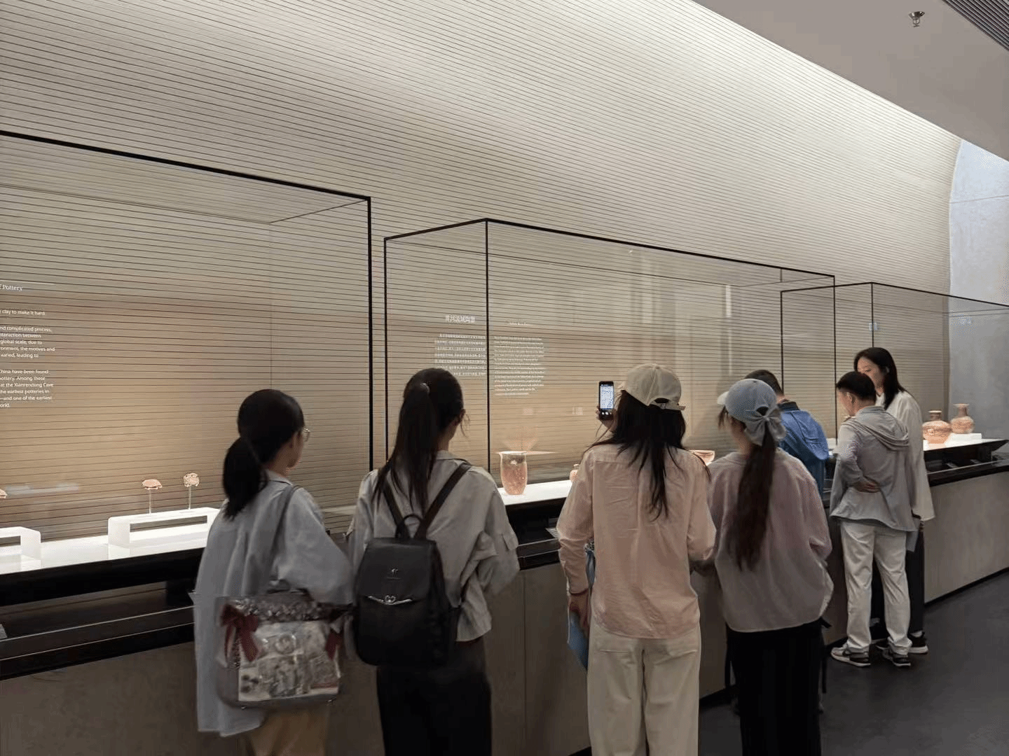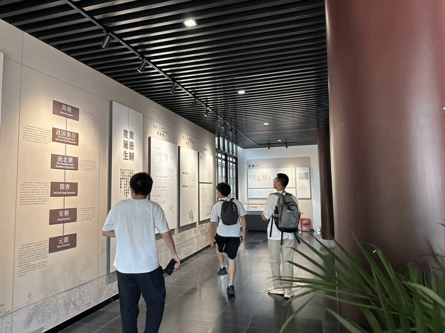 南京之行中,师生踏访了明孝陵、中山陵、总统府等历史遗迹,深入感受古都的沧桑与辉煌。在中山陵,同学们攀登392级台阶,从祭堂俯瞰南京城,通过孙中山坐像、《建国大纲》浮雕及“天下为公”匾额,感悟近代中国的理想追求。南京博物院的青铜重器、西汉金兽等文物,配合AR技术修复六朝青瓷的互动体验,让同学们领略了中华文明的兼容并蓄与科技赋能的传承创新。玄武湖的考察则聚焦郭璞仙墩与明代黄册库遗址,同学们从衣冠冢的营城理念到户籍册页的治理智慧,理解了文脉与历史的古今对话。