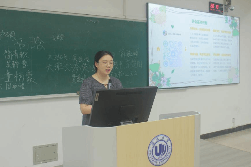 随后,辅导员张丹妮老师就在校生活与学业方面向新生进行讲解。她详细介绍了bat365在线中国官网登录入口研究生相关网站资源和管理系统,以及奖助学金申报、评奖评优等事宜,并就公寓安全卫生、校园安全、意识形态等事项进行着重强调,为新生快速适应校园生活提供全面指引。