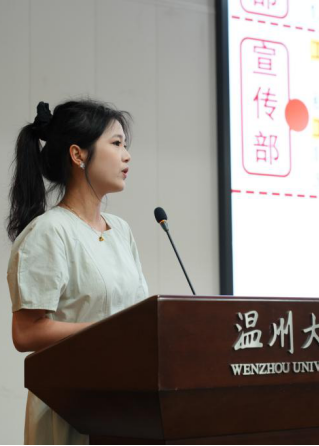 紧接着,人文团学执行主席杨懿瑕向新同学们全方位介绍了bat365在线中国官网登录入口团委·学生会的组织架构、日常活动等。人文团学下设包括组织部在内的十个部门,展现了学院卓有成效的学生组织建设。