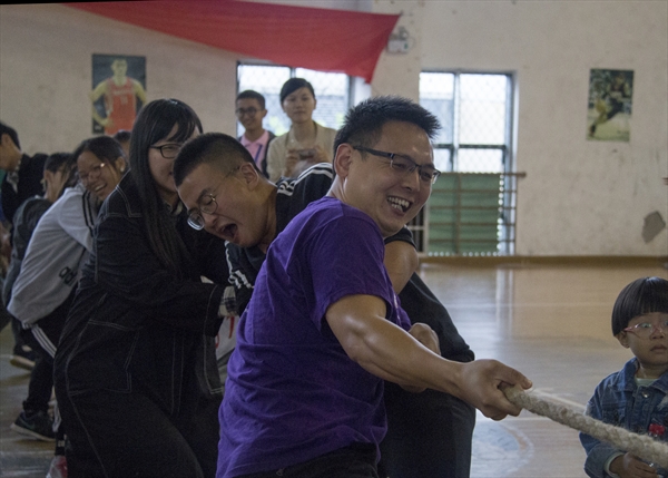 上午八点院运会正式拉开序幕。竞赛项目包括运球接力,集体跳绳,两人三足和趣味拔河。活动开始,刘纪峰老师发表了开场致辞,表示趣味性运动重在玩得开心,要求参赛师生秉持"友谊第一,比赛第二"的宗旨。紧接着在一片欢声笑语中,两人三足项目最先开展,选手们努力保持平衡,手挽手,肩并肩,凭借默契配合,在赛场上健步如飞。之后的运球接力,集体跳绳也同样精彩,场地里不时爆发出阵阵加油叫好。最后全场在拔河比赛到达高潮,师生之间团结协作,同心同力,一下子就拉近了距离。
