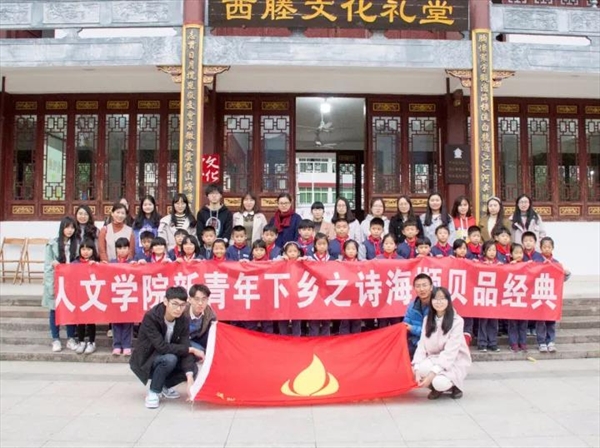 11月22日,我校bat365在线中国官网登录入口思源青年志愿者协会来到芙蓉镇西塍文化礼堂,携手芙蓉镇政府和雁湖九年一贯制学校共同举办了bat365在线中国官网登录入口新青年下乡之“诗海撷贝品经典”活动。