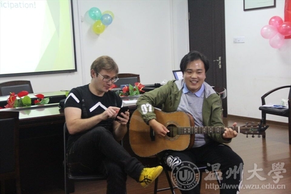 学习会的最后,参与者们在卡纸上写下对于英语活动及英语学习的需要和期待,放入现场的征集箱中,并抽取了三份幸运大奖。来自音乐学院的嘉宾为大家弹起了吉他唱起了歌,外教luca也情不自禁地参与进来,为大家一展歌喉。欢声笑语中,交流会完满落幕,但英语的魅力却永远地留在了每个参与者的心中,引导着他们不断探索英语学习的乐趣。