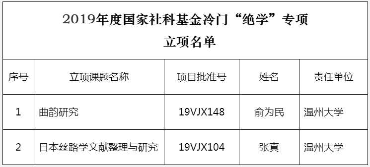 2019年度国家社科基金冷门“绝学”和国别史等研究专项立项名单现已公布,bat365官网俞为民老师、张真老师喜获本年度国家社科基金冷门“绝学”研究专项立项。