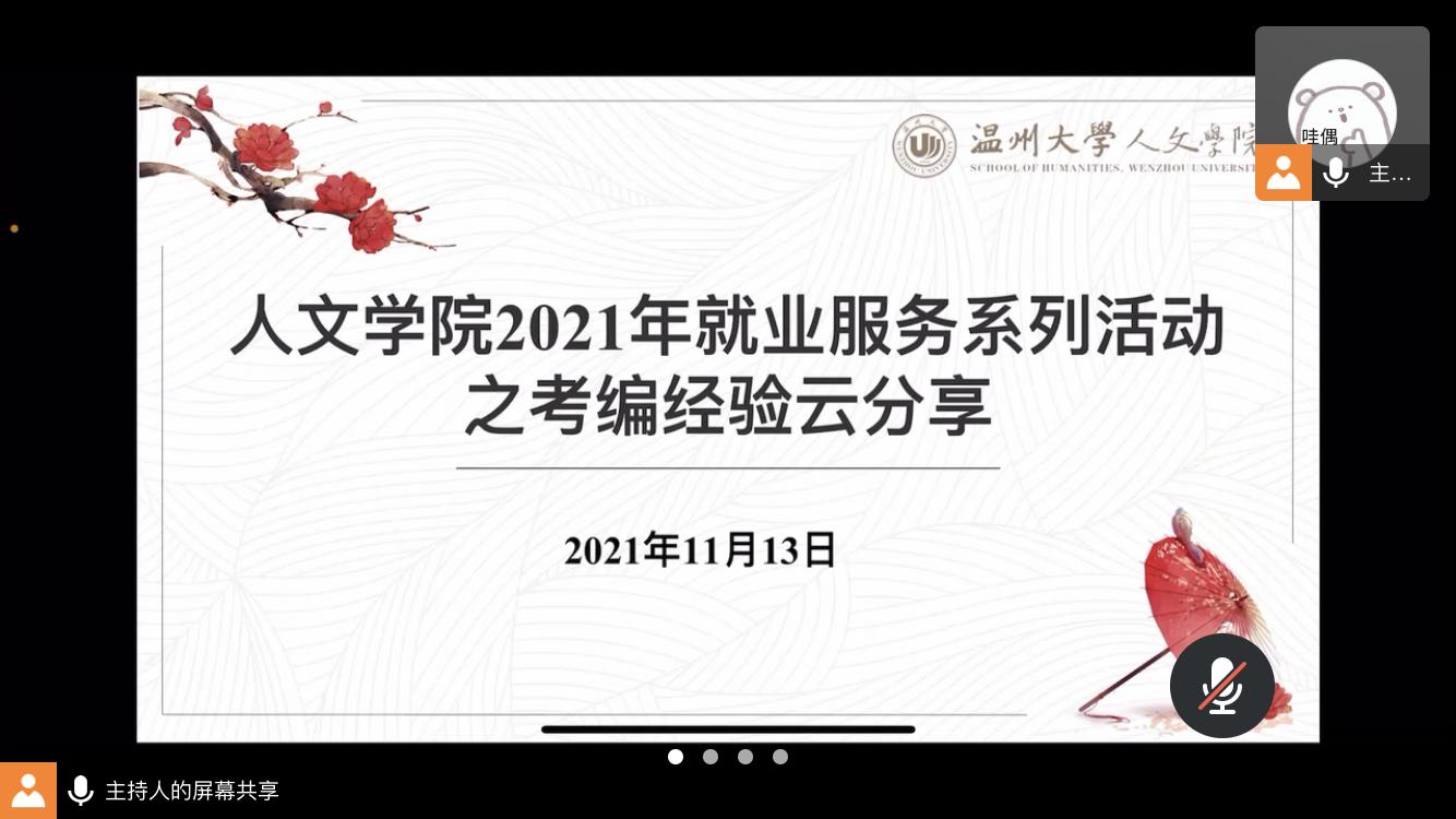 2021年11月13日晚上,bat365官网2021年就业服务系列活动之校友考编经验云分享在腾讯会议上拉开序幕。本次活动邀请了四位成功考编的校友参加,向诸多有考编意向的学子分享经验、答疑解惑。