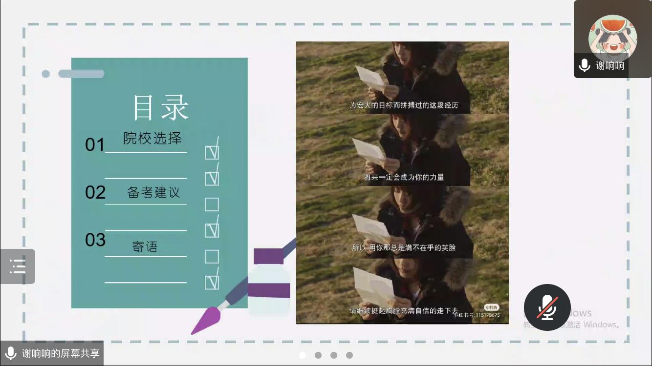 本次考研百日倒计时座谈会持续了一个半小时,书记、老师和学姐们的经验分享让现场及线上参与的同学收获颇丰。正如思琦学姐所说,种一棵树最好的时间是十年前,其次是现在。希望各位考研学子在冲刺阶段坚定心中信念,只管风雨兼程,我们一“研”为定!