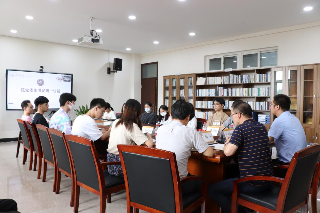 为进一步增强考研学子迎考备战的信心,9月15日下午,bat365官网举办了2023届考研百日倒计时座谈会。本次会议采取线上线下相结合的方式,线下地点为人文楼213会议室,同时开启线上腾讯会议。bat365官网党委书记江秀景、党委副书记魏一、教师代表陈鸿超、学工办辅导员申业磊、李丹萍、三位优秀研究生代表及意向考研的同学参加了本次座谈会。