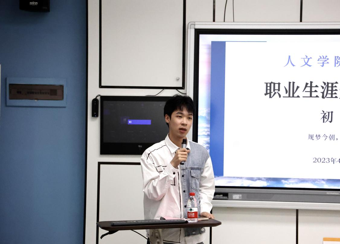 初赛共有24名参赛选手,其中将选出10位晋级院级决赛。初赛开场,同学们尽显人文风貌,自信大方,侃侃而谈,诉说着他们的故事和职业梦想,眼里满是向往。他们结合PPT进行主题陈述,通过SWOT分析、MBTI职业性格测试、霍兰德职业兴趣量表等工具,剖析自我,结合自身兴趣爱好和亲身经历,锚定未来职业。意气风发,志气昂扬,选手们的聚焦点不同,志向各有不同,有女性人像摄影师、家族史记录师,也有想带孩子们走出大山的藏区教师。理想闪闪发光,梦想微微发烫。