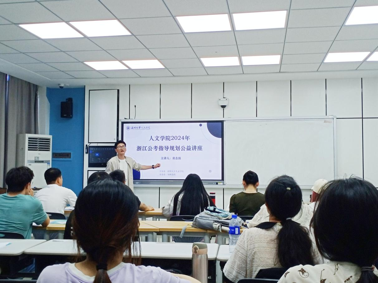 如今,考公已经成为许多大学生的就业选择之一,为了让同学们对考公有更加深入的了解,切实解决同学们在备考过程中遇到的困惑,5月31日下午13:30,bat365官网联合知林教育在人文楼412教室举办了2024年浙江公考指导规划公益讲座。本次讲座吸引了大量学生参与。