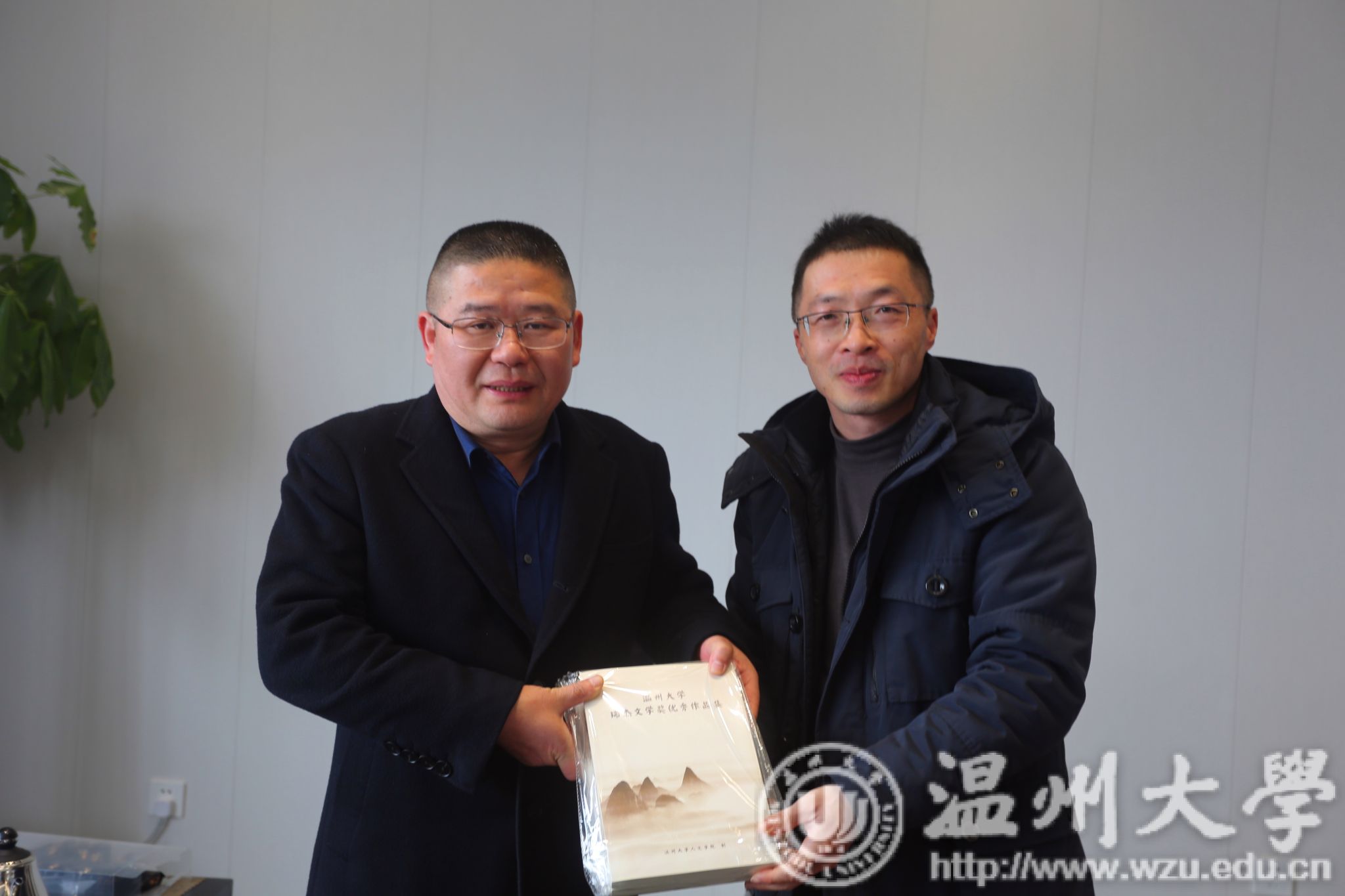 双方就校企合作事宜进行深入交流。学院党委书记江秀景介绍了学院师资队伍、专业建设、学生生源等情况,充分肯定了此次走访的积极意义,期望未来双方加强合作深度和广度,促进互利共赢。学院党委副书记魏一介绍了学院就业工作和毕业生概况,并为陈孝杰董事长带去了《bat365在线中国官网登录入口瑞杰文学奖优秀作品集》,就陈董事长在学院人才培养和建设发展方面的支持表达了由衷感谢。双方在会上达成了温州万全教育集团来学院做专场招聘会的初步意向。