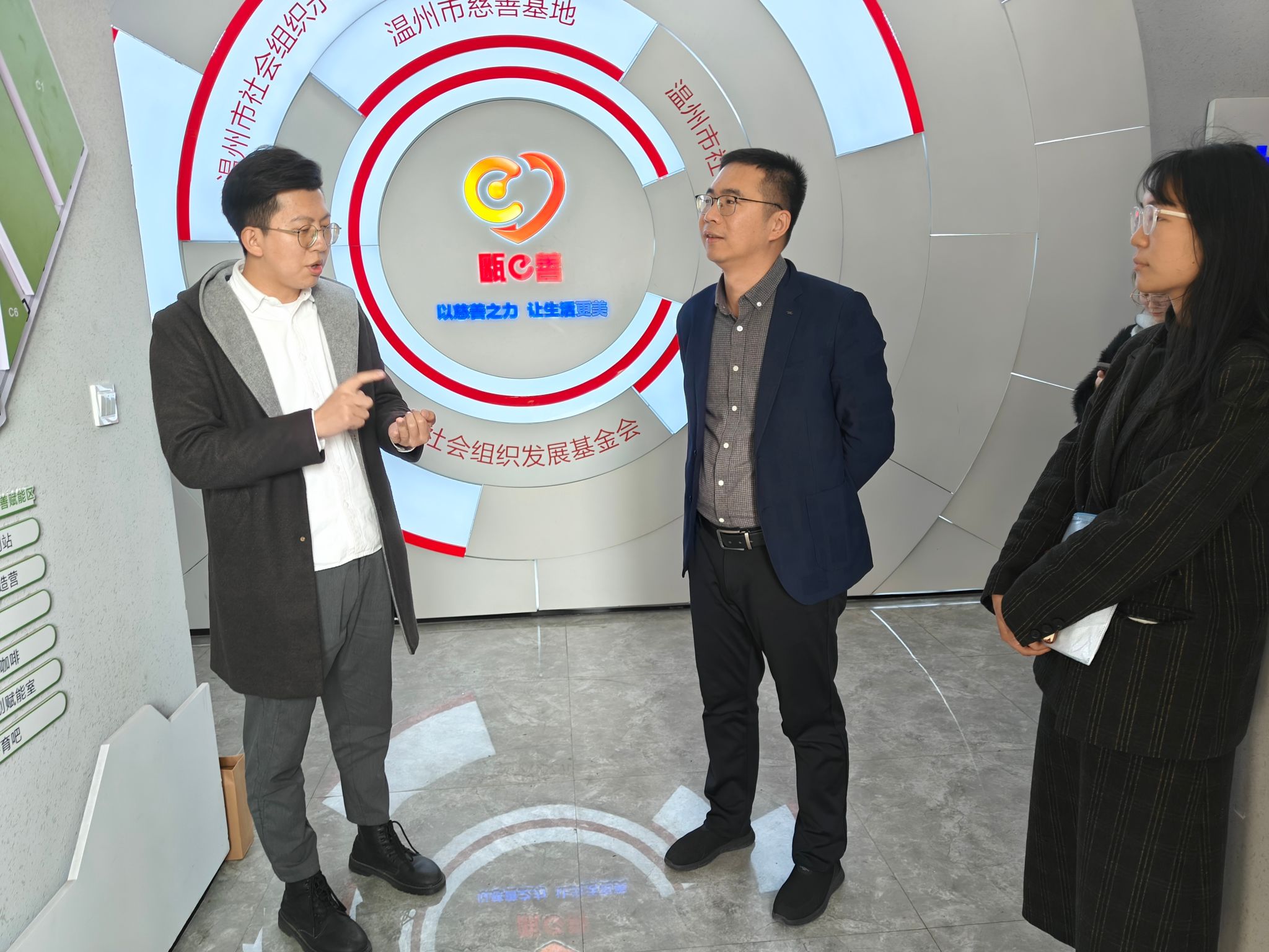 为贯彻落实教育部“访企拓岗促就业”专项行动,深化校企合作,助力毕业生更好更快就业,3月22日下午,学院党委书记江秀景、辅导员谭黄、学院本研学生一行实地走访瓯e善温州市慈善基地。在创始人、温大优秀创业校友张祥的陪同下,一行人参观了基地,随后进行了座谈。