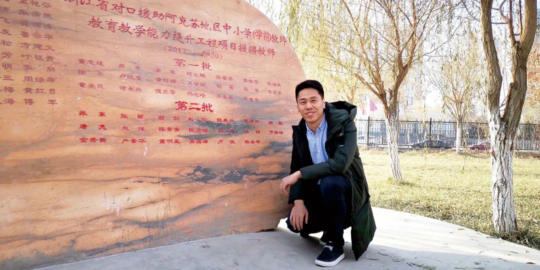 就这样,鲍良兵踏上了他的援疆之行,在阿克苏教育学院开展为期一年半的教育援助工作。在新疆的那段时间里,工作之余的视频通话和微信成了他与未婚妻传递情意的常态方式。2018年11月18日,鲍良兵请假从新疆回温州,二人如期完婚。在婚礼现场,阿克苏援疆教师工会“偷偷”给鲍良兵老师一个甜蜜又温暖的惊喜礼物——时任浙江省援疆指挥部党委书记、指挥长,阿克苏地委副书记王通林率阿克苏教育学院20名援疆教师和学生,为他送上来自大漠边陲的祝福。
