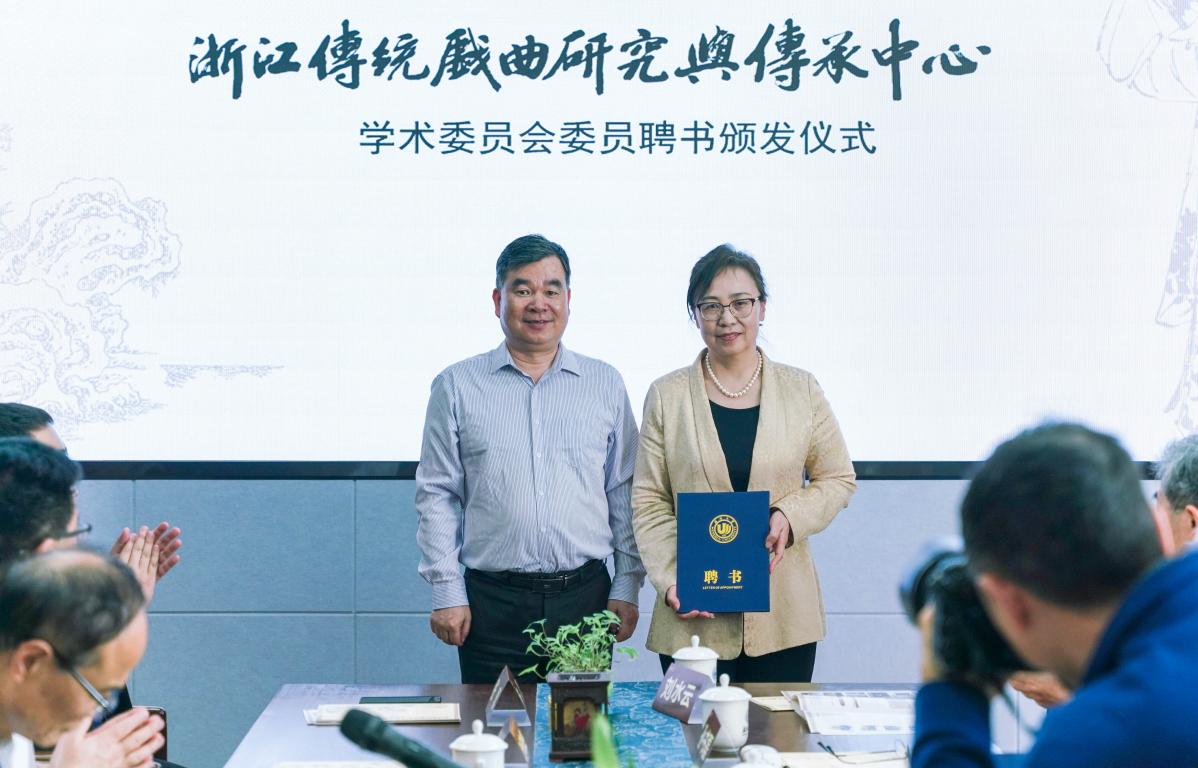 随后的中心学术委员会委员聘书颁发仪式上,bat365在线中国官网登录入口副校长徐和昆教授、戏曲中心主任俞为民教授、温州市社科联副主席叶雪影为浙江传统戏曲研究与传承中心学术委员会委员叶长海(上海戏剧学院资深教授)、杜桂萍(北京师范大学教授)、廖可斌、黄仕忠(中山大学教授)、王馗、朱恒夫、孙书磊(南京大学教授)、王宁(苏州大学教授)、刘水云(上海戏剧学院教授)等颁发了中心学术委员会委员聘书。