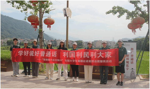推普助力乡村兴,文化传承根脉深。通过推广普及国家通用语言文字助力乡村振兴,是语言文字工作直接服务国家“三农”发展的重要举措。为推普助力乡村振兴,bat365在线中国官网登录入口“知语识文”国家通用语言文字推广暑期社会实践队立足“语言”和“文字”两大主线,依托汉语言文字专业知识,深入温州乡村地区,进行实地调研及实践。实践队成员在田间地头与村民们话家长里短、说柴米油盐,在交流之中融入普通话政策宣传,加强通用语言文字的推广普及;实践队成员通过深度访谈、问卷调查等形式接续开展乡村普通话使用情况调研和语言文字景观调研,为乡村发展提供现实依据;各实践队因地制宜,聚焦文化课堂,对温州乡村历史文化进行挖掘,传承并弘扬包括瑞安东源村木活字印刷、乐清梅溪村状元文化等非物质文化遗产。