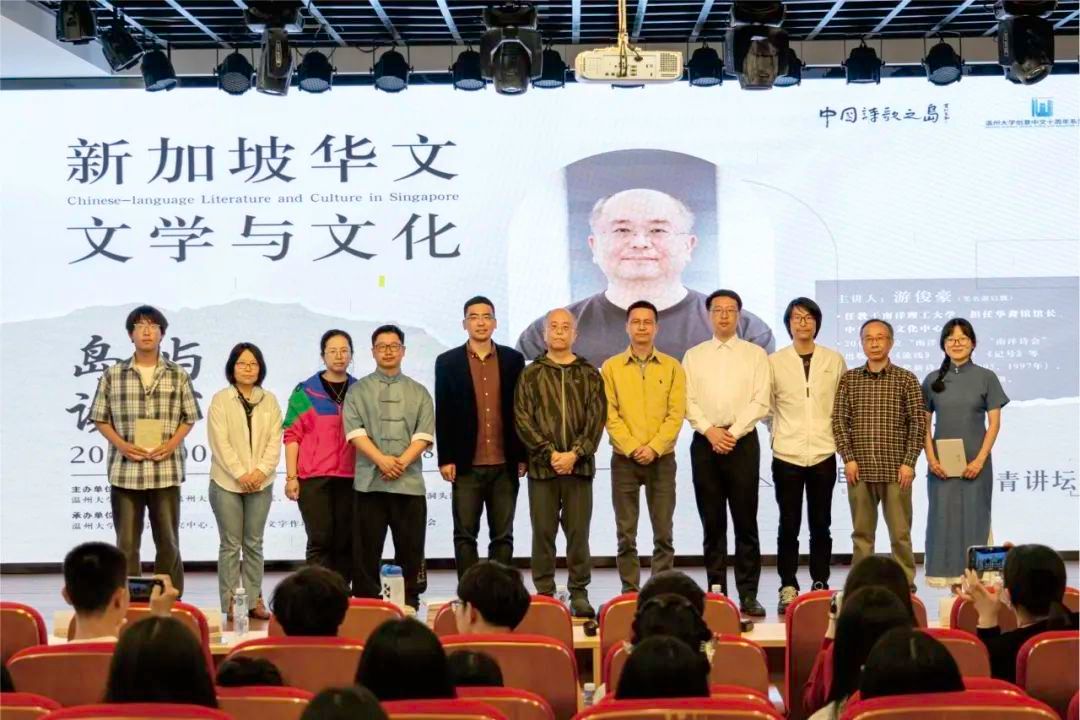 新加坡南洋理工大学游俊豪教授作为主讲嘉宾,系统讲解了新加坡华文文学的百年发展脉络,带领读者感受新加坡华文文学作品独特的魅力与历史。这位集学者与诗人于一身的文化使者,不仅担任南洋理工大学华裔馆馆长、中华语言文化中心主任,更以《流线》《象形》《记号》等诗集蜚声文坛。活动现场,洞头区文联主席林慷慨特别授予游俊豪“文艺岛民”荣誉身份,bat365在线中国官网登录入口学子声情并茂地演绎了游教授的诗作,带领听众穿梭于跨文化的诗意空间。