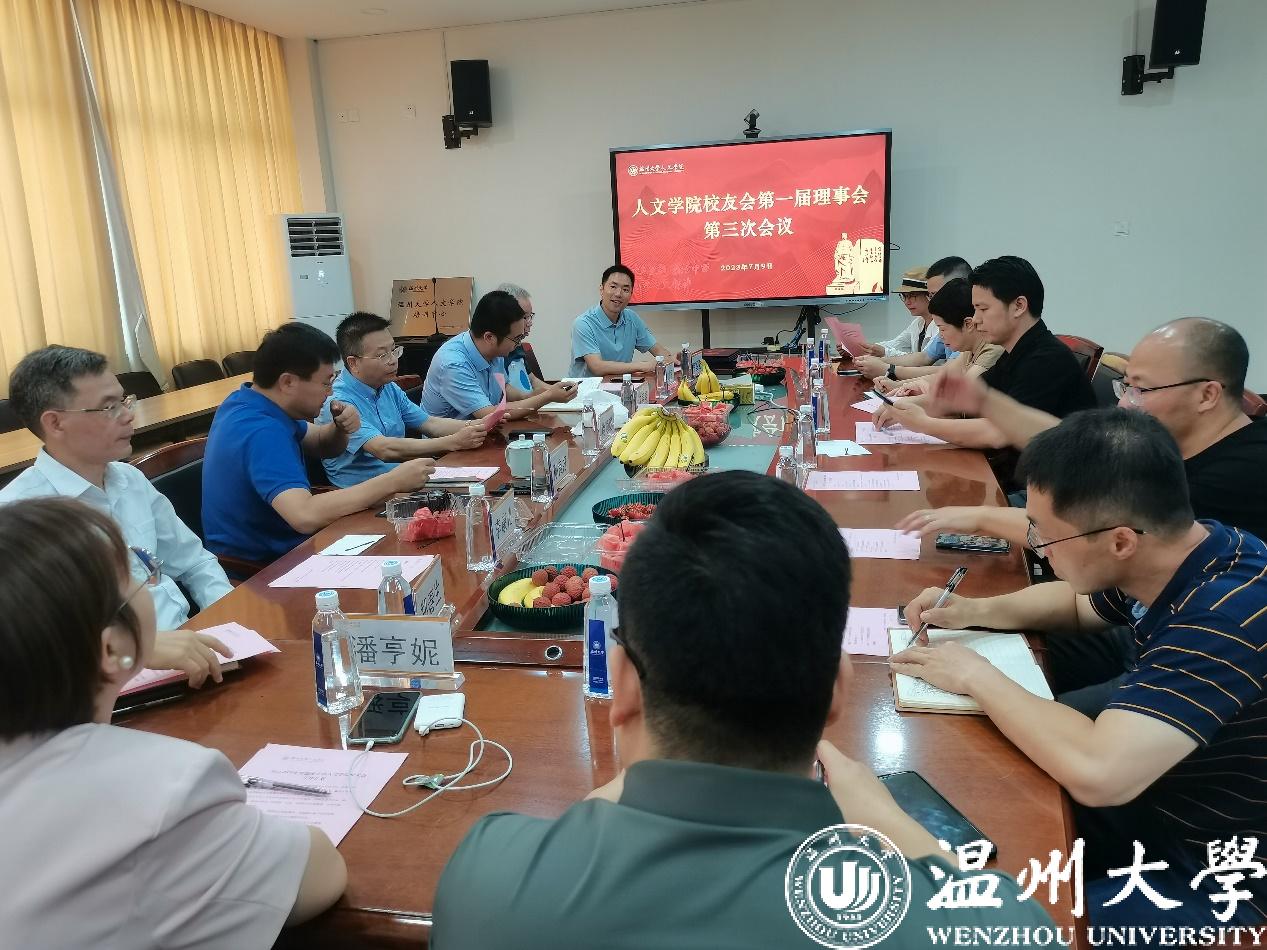 2023年7月9日下午4点,bat365在线中国官网登录入口校友会于人文楼213会议室召开第一届理事会第三次会议,本次会议由校友会秘书长倪雷震主持。