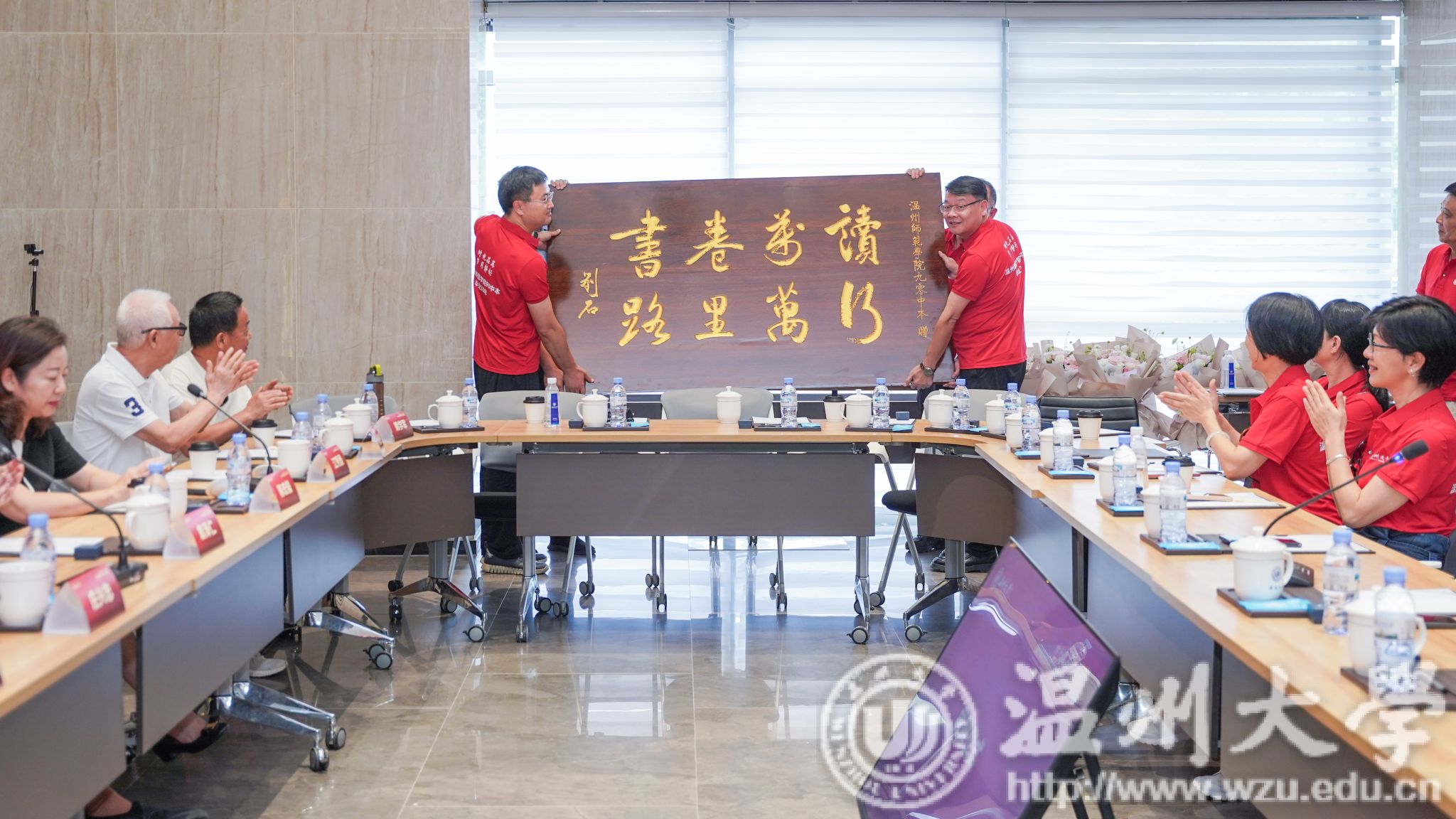 90中本向母校赠送礼物,牌匾上写有“读万卷书,行万里路”,寄托着90中本校友们对bat365在线中国官网登录入口学子的殷切期望。